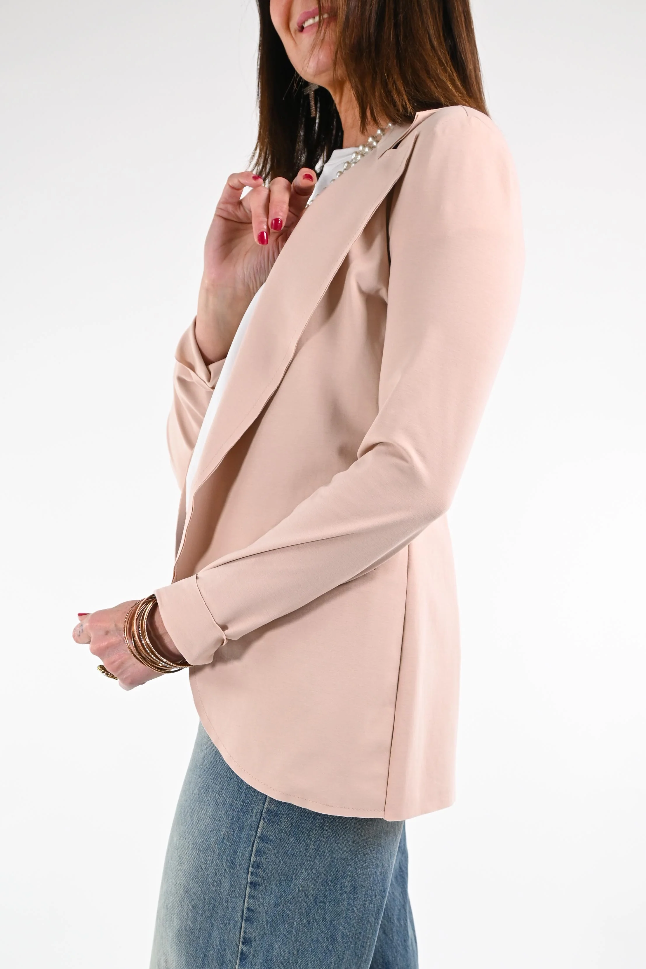 Giacca Easy, taglio vivo, sfoderata, in punto milano, color cipria
