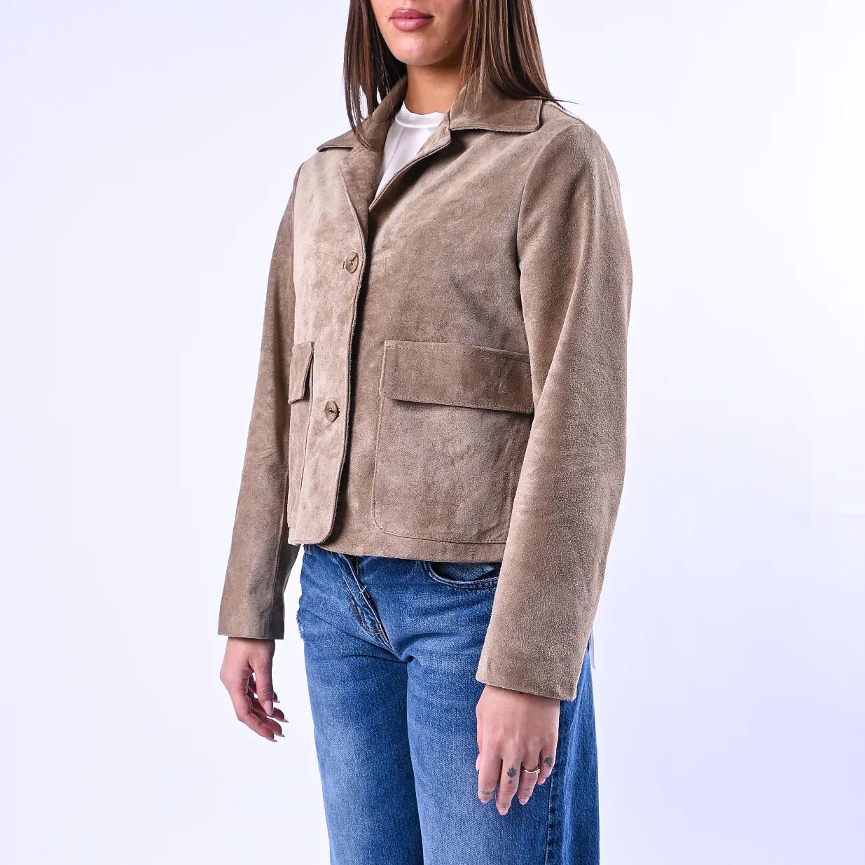 Giacca in morbida pelle scamosciata dal taglio a scatola, dotata di colletto strutturato e tasche applicate funzionali. Completamente foderata e chiusa da 3 bottoni, è il capo ideale per uno stile raffinato e duraturo nel tempo.