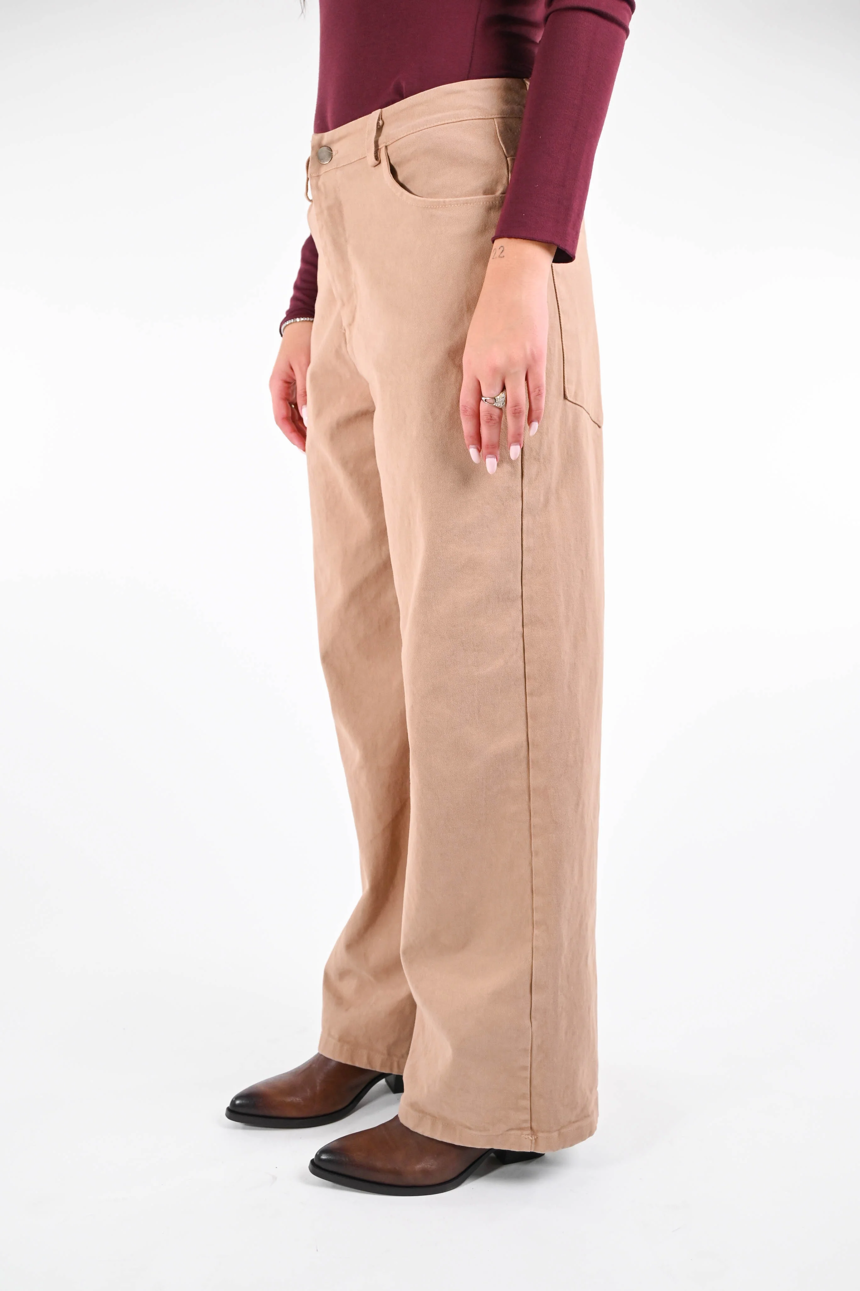 Pantalone wide leg in gabardina stretch, 4 tasche, colore Beige.