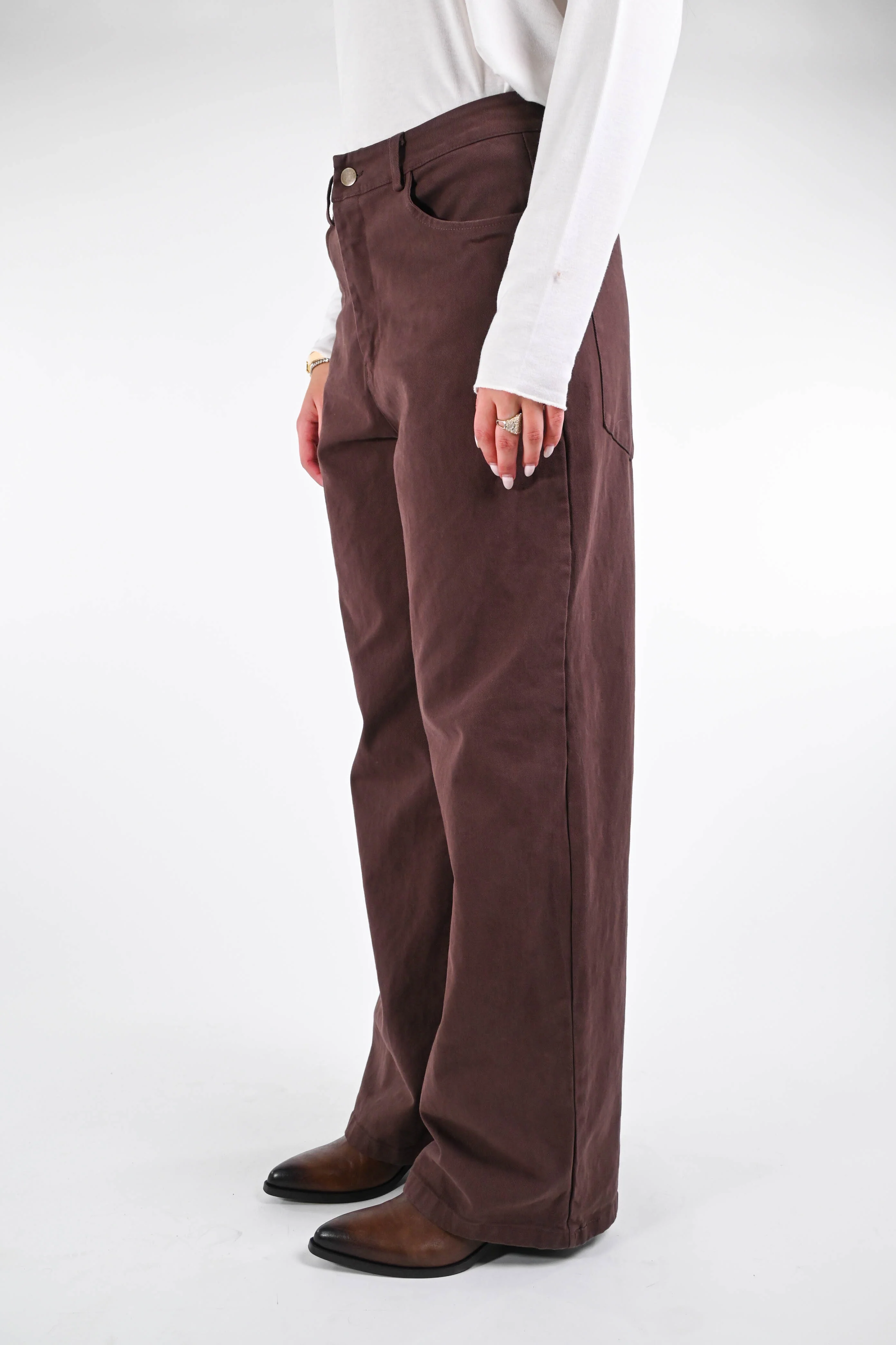 Pantalone wide leg in gabardina stretch, 4 tasche, colore Moro.