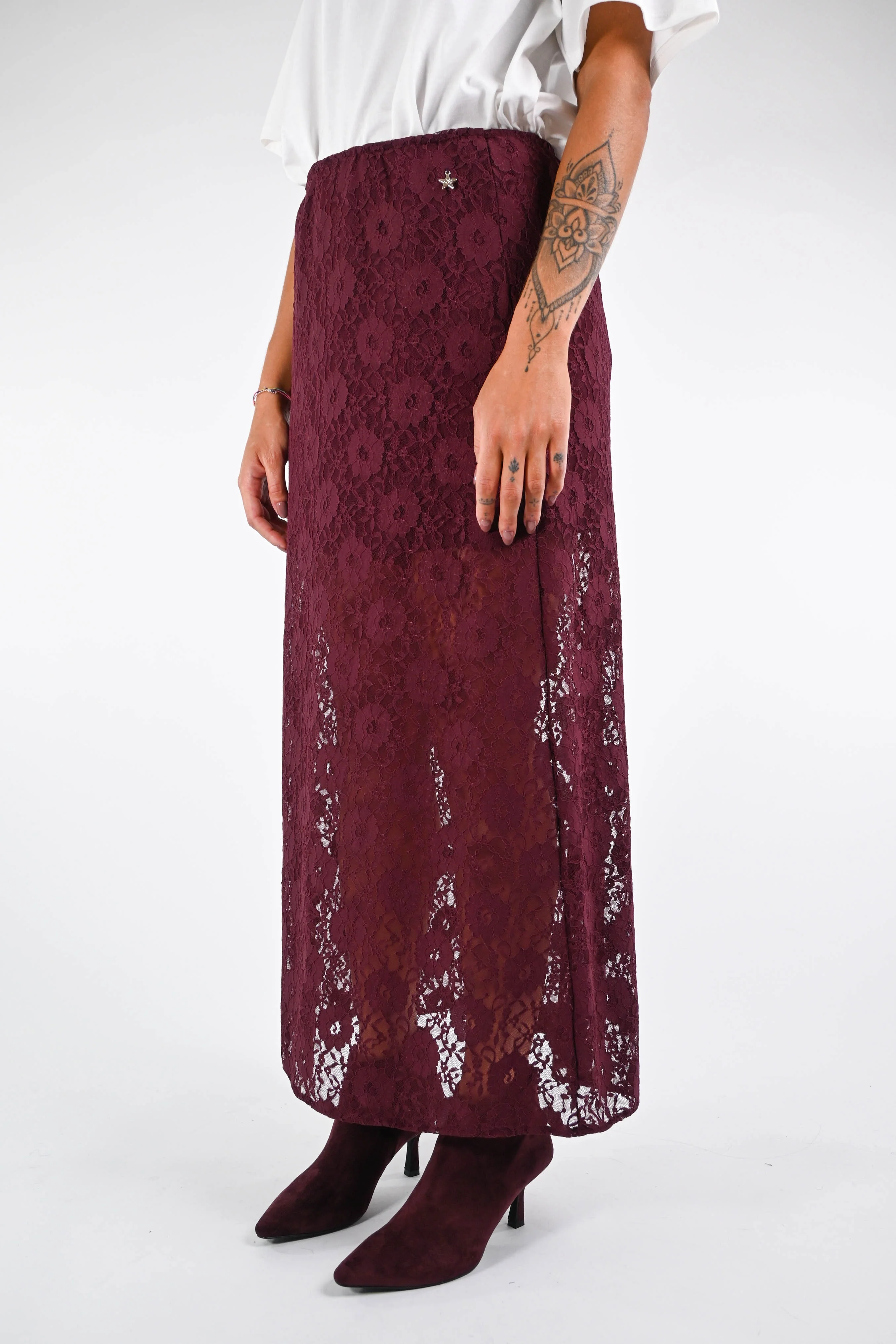 SOUVENIR - GONNA IN PIZZO CON SPACCO ART.M38F0854 - BORDEAUX