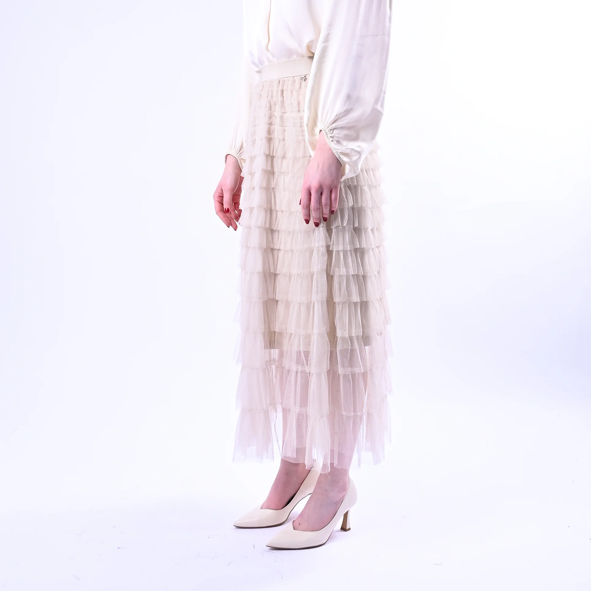 SOUVENIR - GONNA LUNGA IN TULLE A BALZE ART.S39M0744 - SABBIA