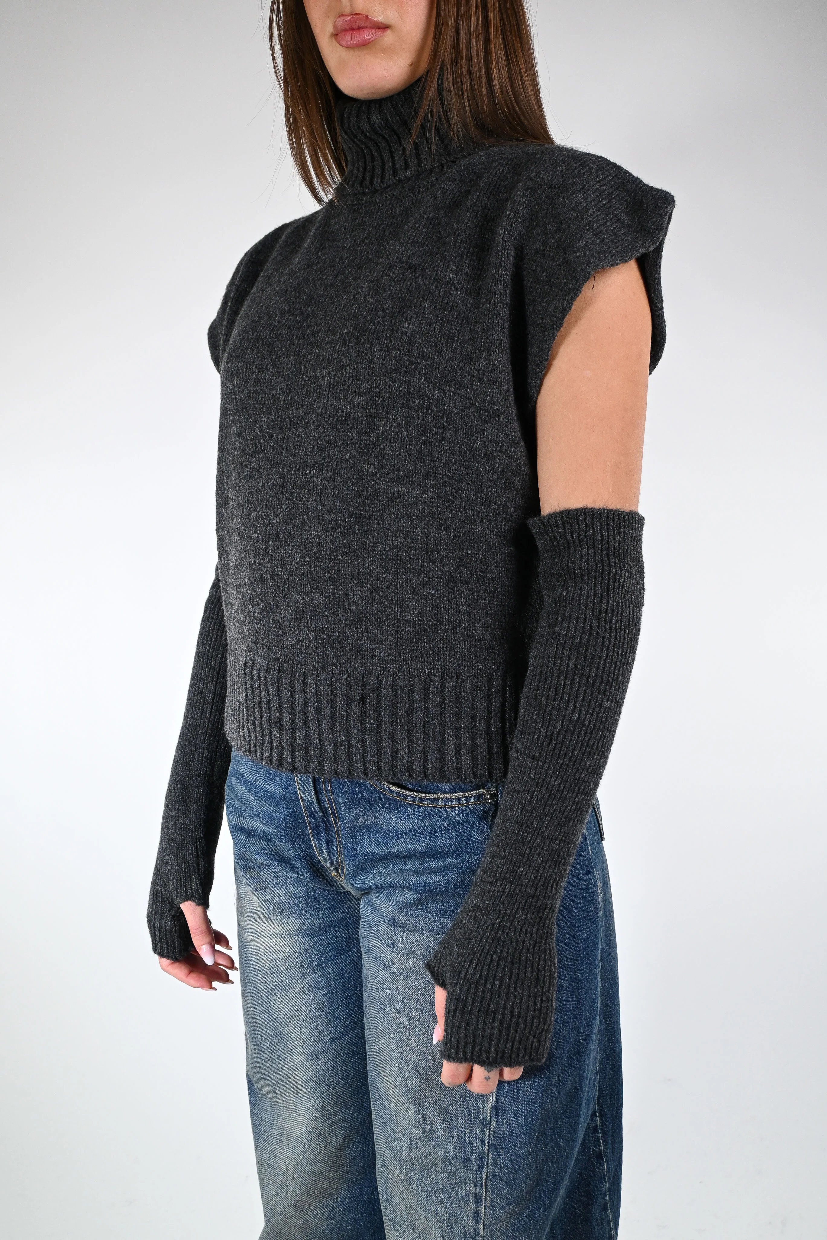 Maglia/gilet dolcevita con manicotti abbinati, colore antracite