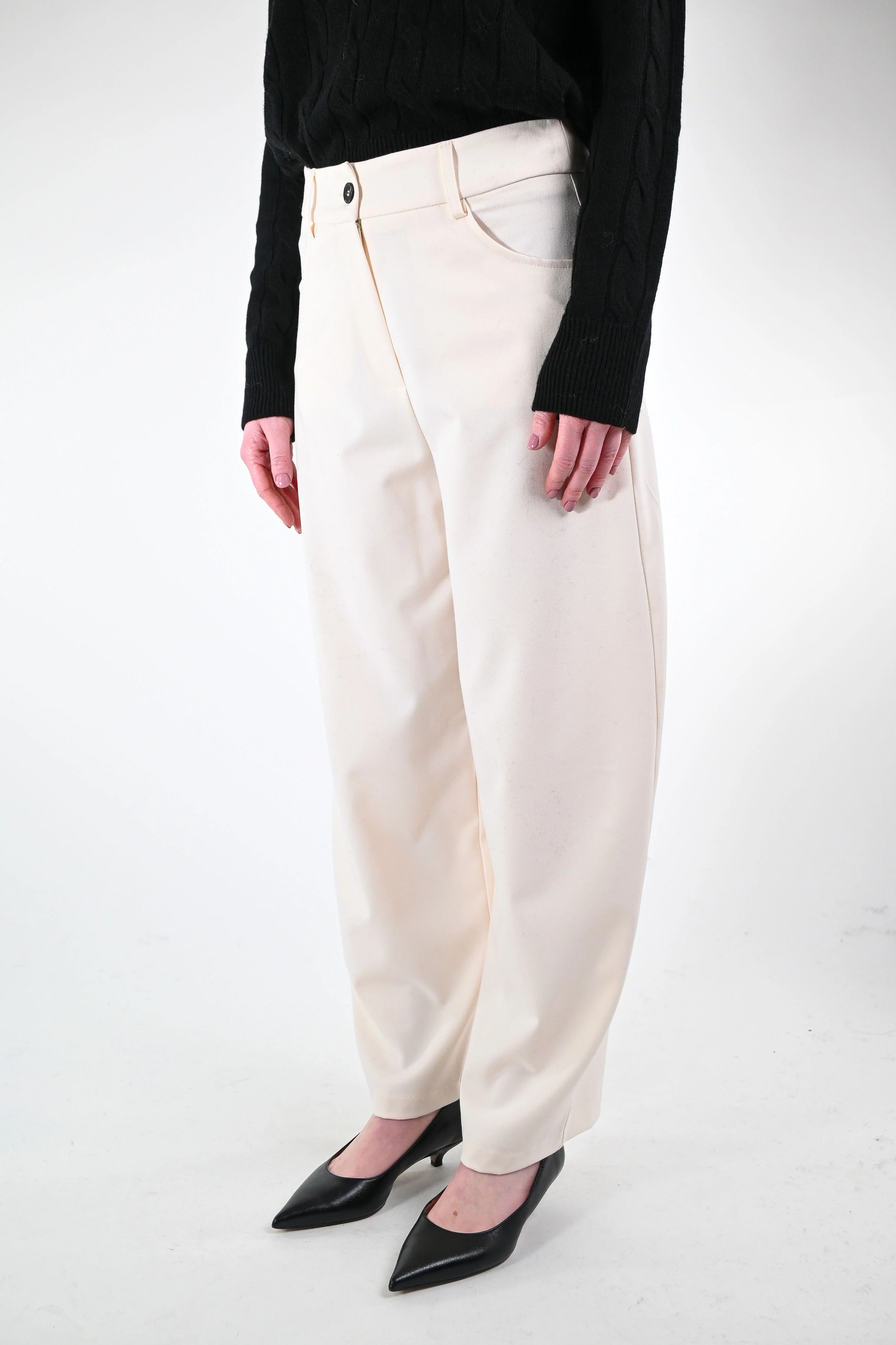 Pantalone balloon in flanella, con tasca grande dietro, colore panna